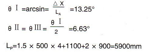 | 2、選用補償器: 補償器Ⅰ選用:0.6JY500×2,θ0=±2.5 LⅠ=0.8m,KθⅠ=590N·m/度 補償器Ⅱ、Ⅲ選用:0.6JY500×6,θ0=±8 LⅡ=LⅢ=1.1m,KθⅡ=197N·m/度 |